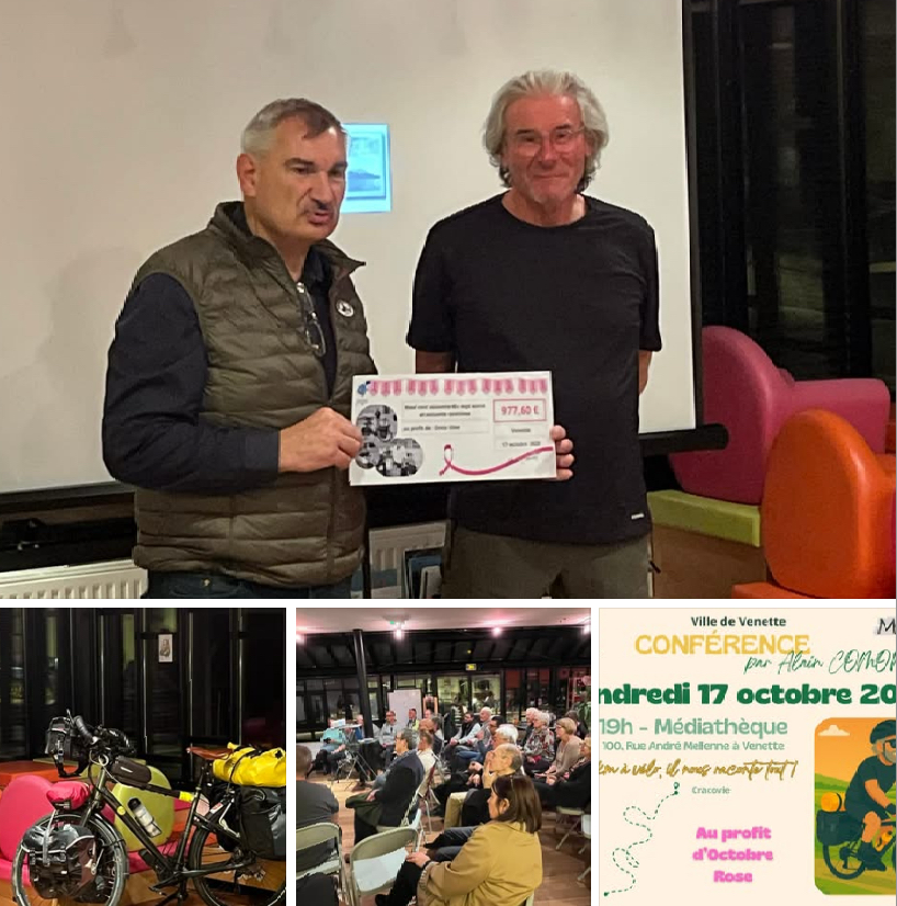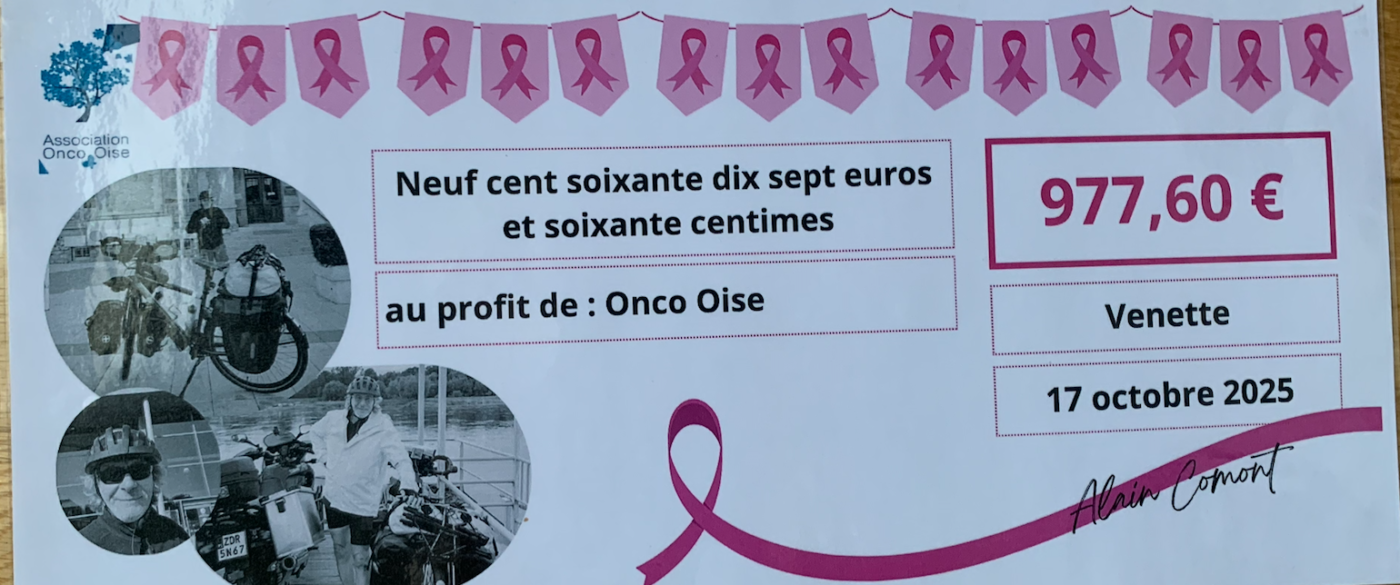 Ce fut un moment symbolique et chaleureux: la remise du chèque au profit de ONCO OISE, correspondant à la cagnotte LEETCHI récoltée pendant mon voyage à vélo VENETTE – CRACOVIE – VENETTE.